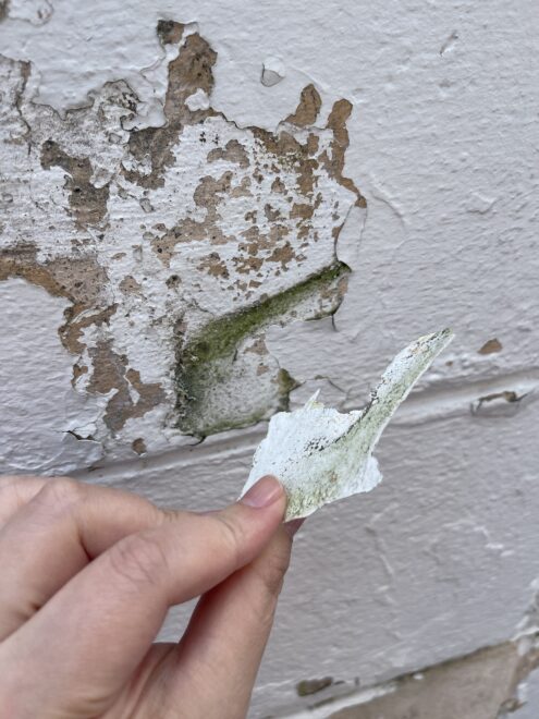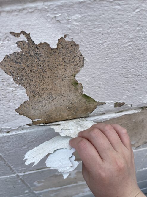 ご覧の通り、塗膜が下地から剥がれて素地が見えています。