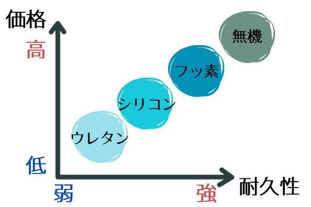 比較的安価で摩擦に強い性質を持ちますが、耐候性では他の塗料に劣ると言えます。
